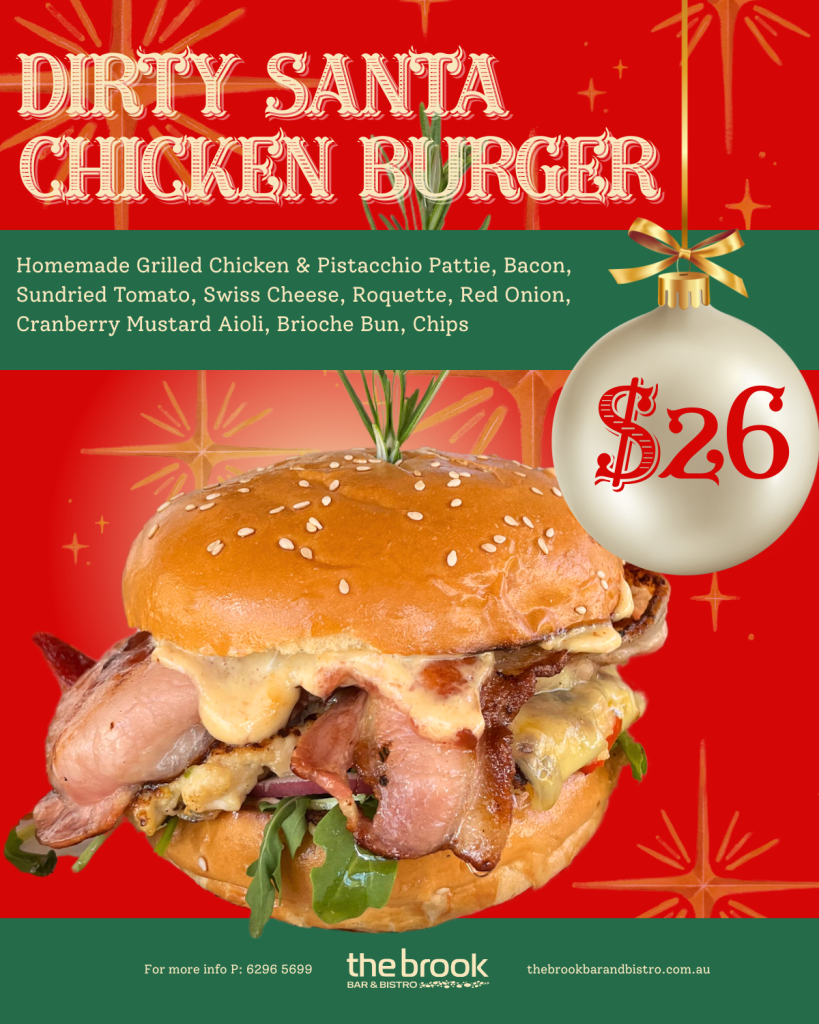 Say hello to the Dirty Santa Chicken Burger, only at The Brook this December!